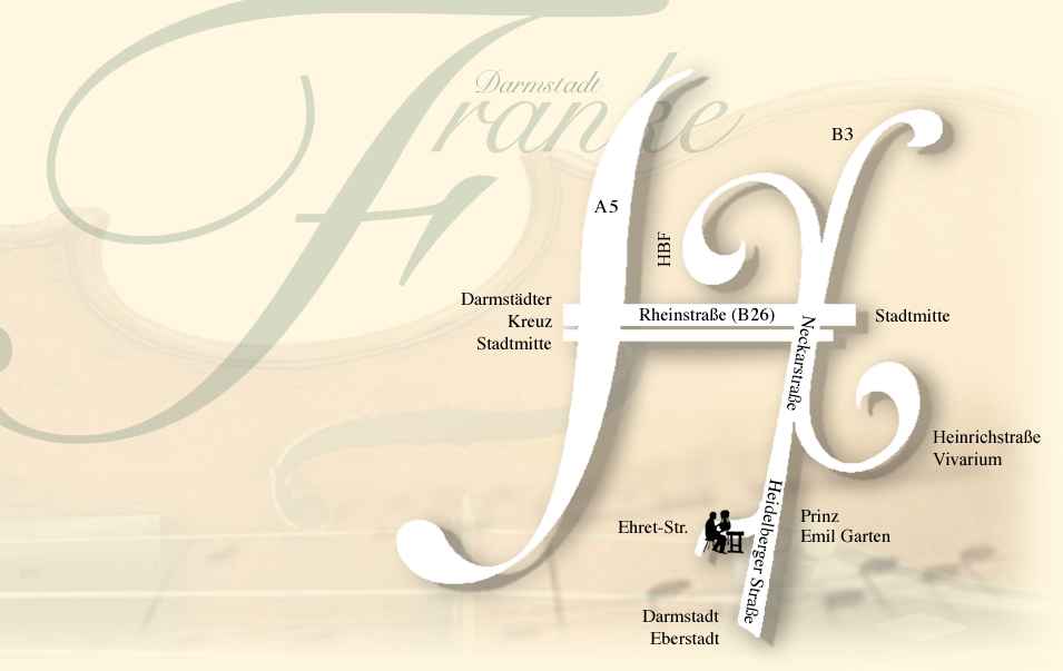 Fachgeschäft für Streichinstrumente, Bögen, Reparaturen und sämtliches Zubehör Heidelberger Str. 79 / 64285 Darmstadt / Tel.: 06151/316620 Öffnungszeiten: Mo.-Fr. 9.00-13.00 & 15.00-18.00 Uhr
